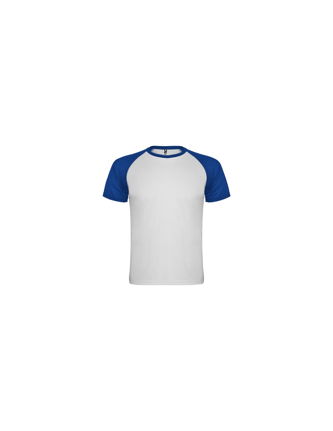Camiseta deportiva de manga corta estilo ranglan en contraste. Cuello redondo en contraste con cubrecosturas de refuerzo.