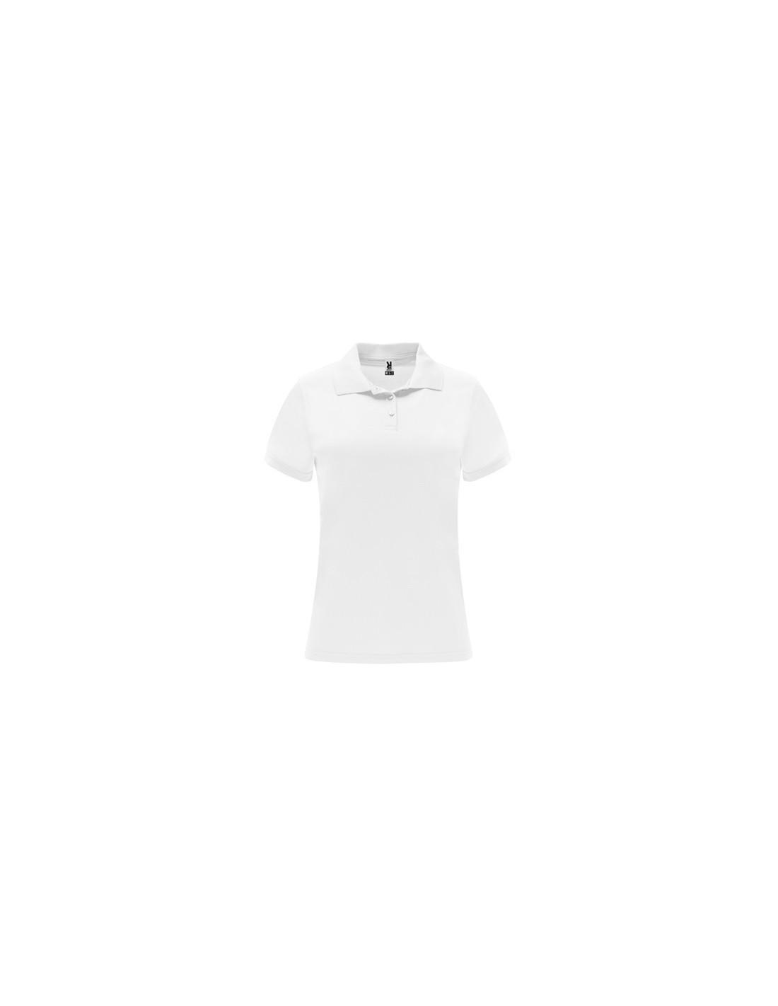 Polo técnico de manga corta para mujer. Cuello tricotosa con tapeta de tres botones. Corte entallado.