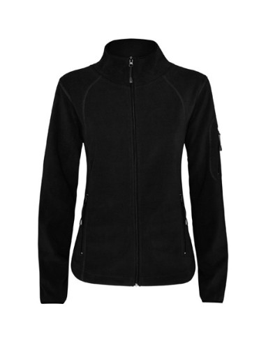Chaqueta micropolar para deporte al aire libre, con cuello alto y manga larga con ribetes en contraste. Bolsillo con cremallera en manga izquierda y cremallera central, ambas en contraste. Costuras en lateral y pecho. Codera en el mismo tejido.
